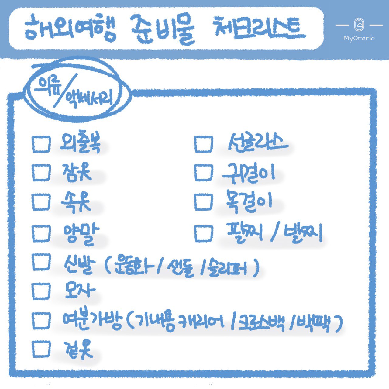 해외여행 준비물 체크리스트 - 의류/액세서리