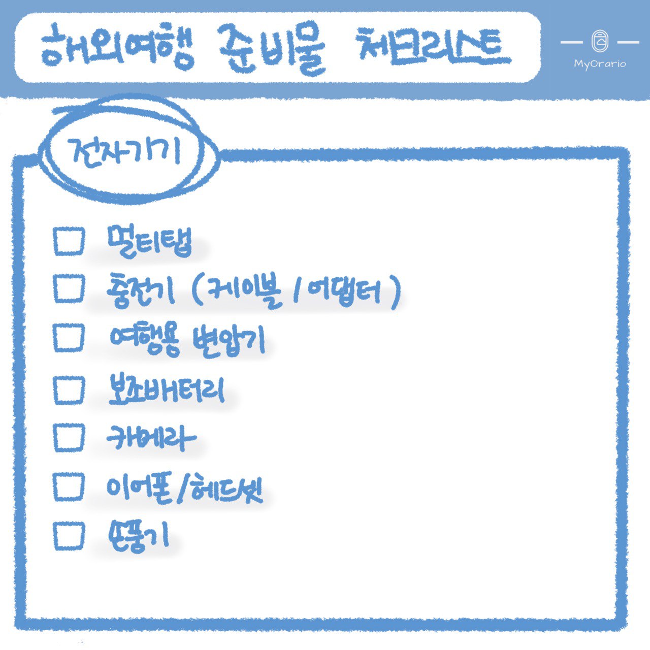오늘은 해외여행을 떠나기 전 챙겨야 할 준비물 체크리스트를 준비해 보았습니다.